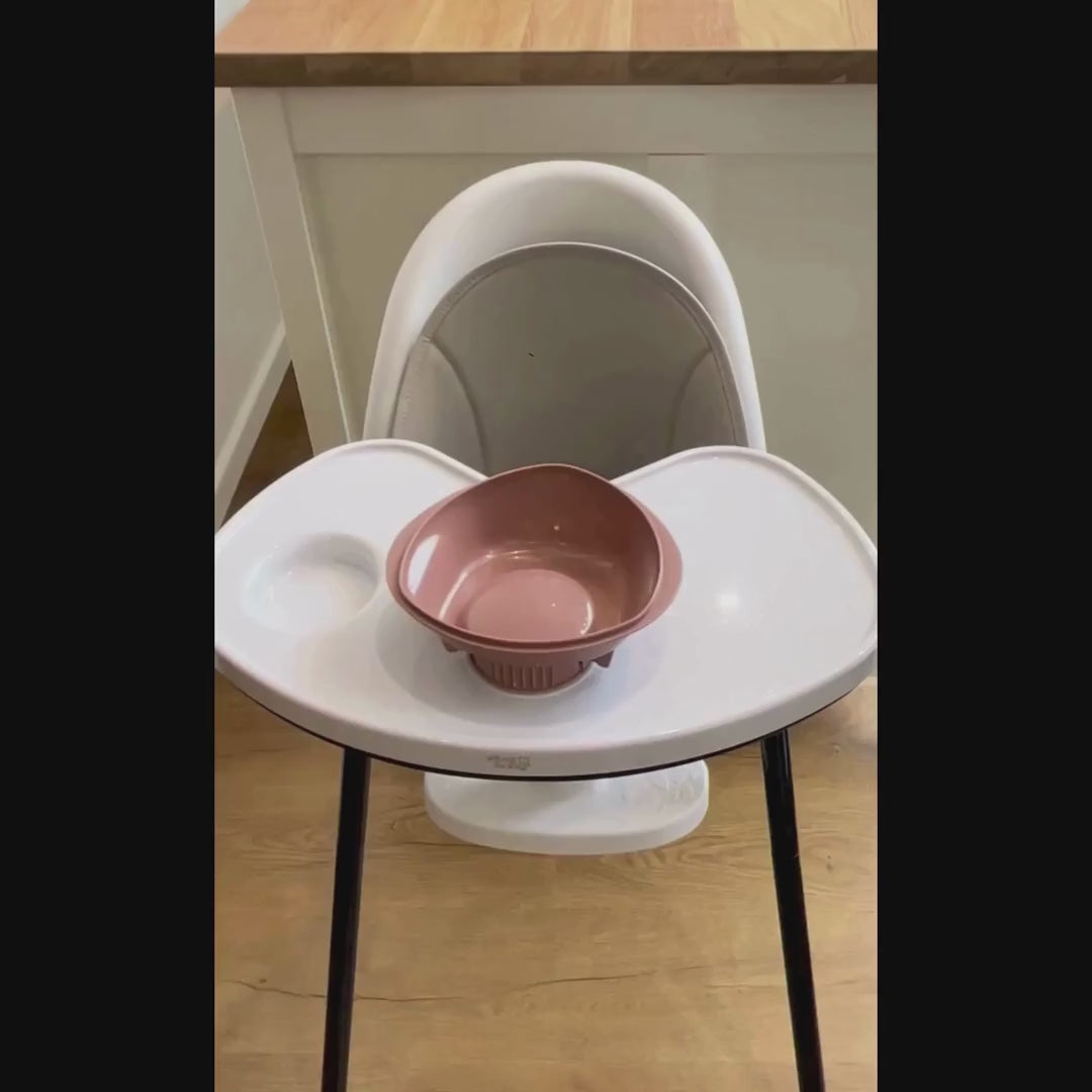 baby’s highchair tray**—flip the lock to secure it, and twist on the bowl.